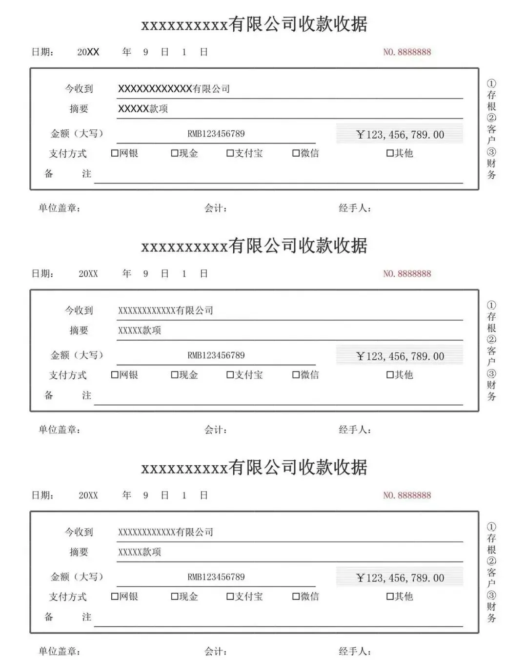 公司收款收据30款模板-excel可编辑(免费分享,可下载,可打印)
