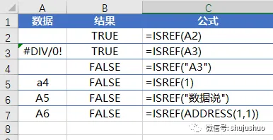 isref函数的作用是判断值是否为引用,不严谨地说,就是看值是否为单元格地址,要注意的是,在Excel的世界里,文本型的引用地址没有办法获取内容的,所以不算引用,函数返回False。所以用address函数构建的地址,需要先使用indirect函数翻译一下。
