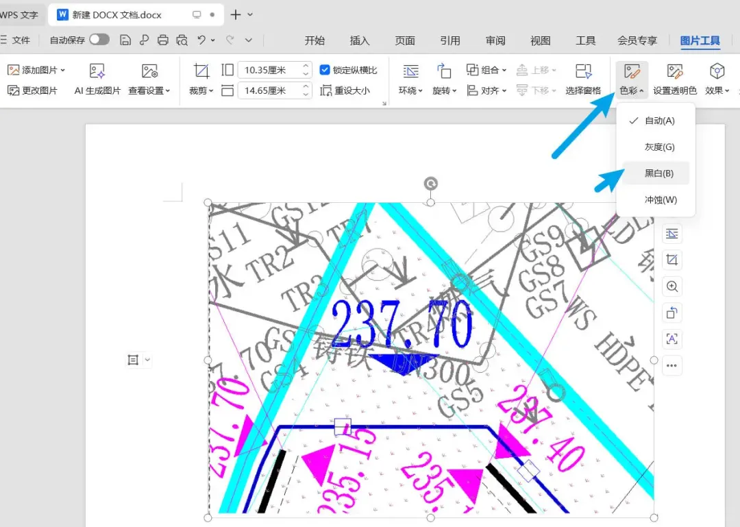 这里介绍一个快速把word文档中CAD截图图片变色白底的的办法: