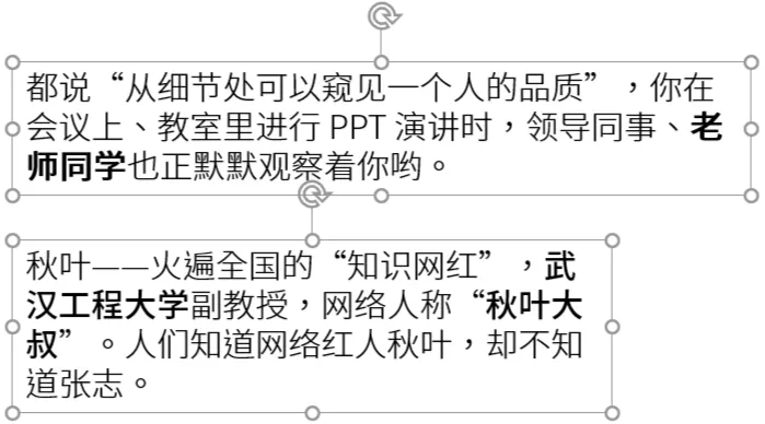 都说「从细节处可以窥见一个人的品质」,你在会议上、教室里进行 PPT 演讲时,领导同事、老师同学也正默默观察着你哟。PPT 排版的时候,很多空格、折行、串行,它都不能帮我们修正,只好靠我们自己啦。有些连续词汇在文字换行的时候会断开,一半在上一行文末,一半在下一行文首。这其实是不太规范的排版方式,特别是公司名称、人名、大事件名称等,断开会显得不尊重。所以看到连续词汇在换行处断开了,记得调整文本框,或是修改文本长度哦~ 很多时候,1.0 倍的行距会让文字看起来拥挤不堪,你知道夏天沙滩浴场下饺子的情形吗?大概就像下图这样:一般来说,我们使用「1.2 倍」或者「1.3 倍」行距就够啦~如果你对行距有特殊需求,可以依次单击【行距】-【行距选项】,把间距改为【固定值】,然后修改数值,就可以选择你想要的行距大小啦。连续词汇、行距都设置好了,可是问题又来了:文本框右侧凹凸不平,怪难看的,一点都不精致。掌握以上 3 个文本处理的好习惯,你在文字细节的处理上,就已经甩同事一条街啦~