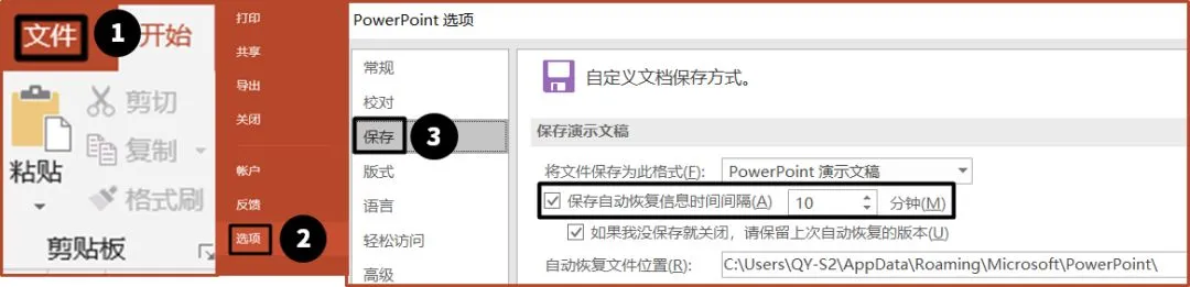 天有不测风云,PPT 做到一半突然停电、脚踢掉电源线、膝盖碰到主机开关、咖啡碰倒把笔记本泼灭……都是常有的事。时不时按一下【Ctrl+S】保存吧,代表那些「被你做到一半惨痛夭折」的 PPT 们求你了~【Ctrl+S】和【自动保存】双管齐下,你还怕做到一半没有保存吗?依次单击【文件】-【选项】-【保存】,就可以设置自动保存的时间间隔啦~今天分享了制作 PPT 的过程中,我们都应该掌握的 4 个好习惯,一起来回顾一下:小习惯虽然不起眼,但是可以加速我们的学习和成长,是我们成为一名 PPT 高手必备的技能!其实,做 PPT,还有很多美化、提速的技巧。