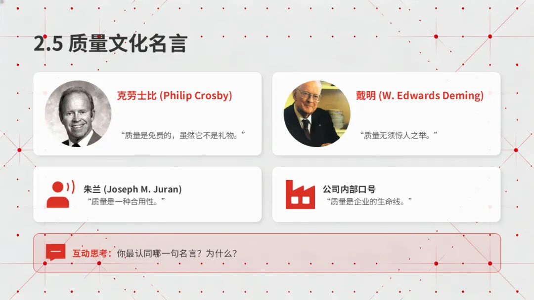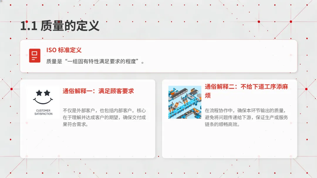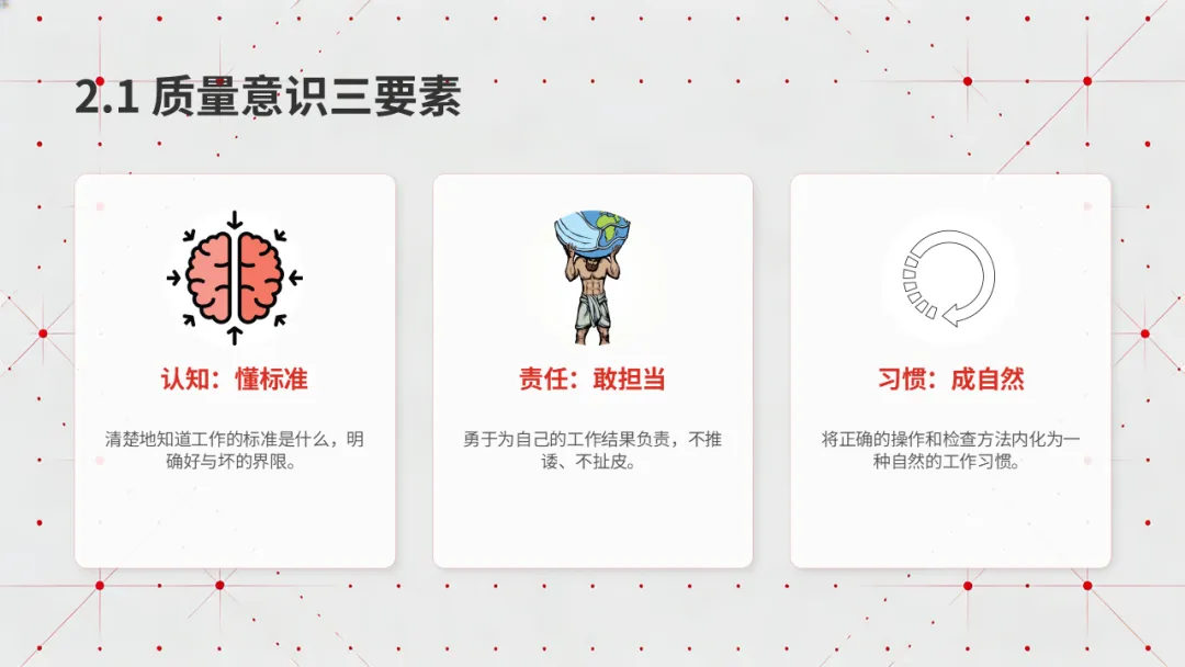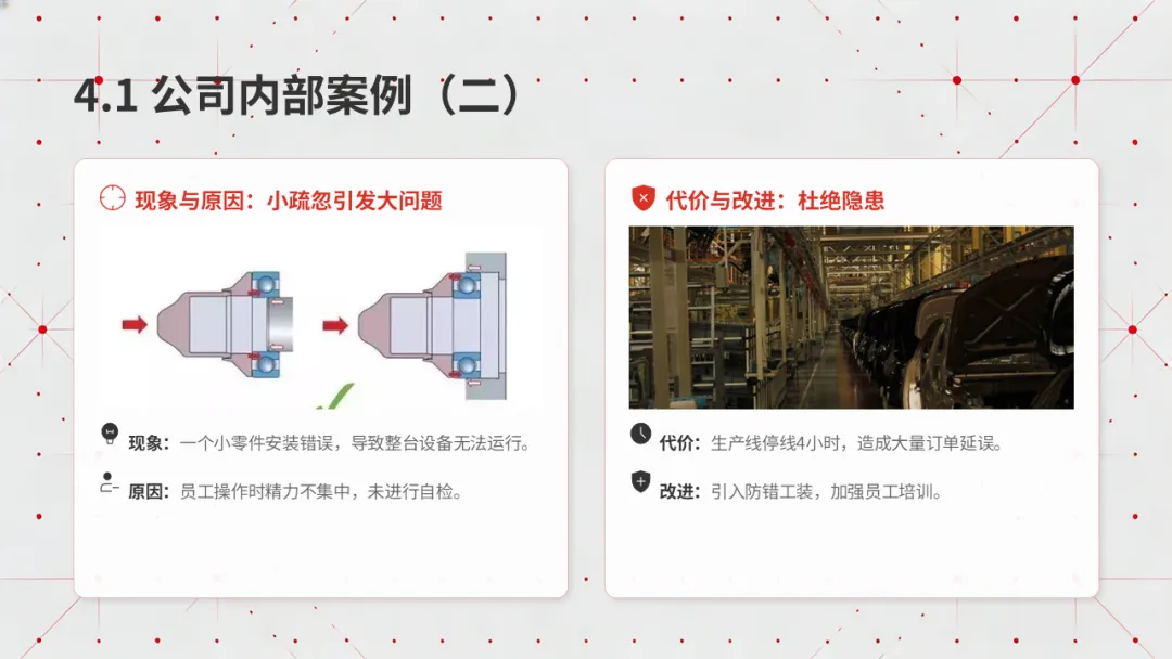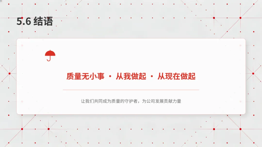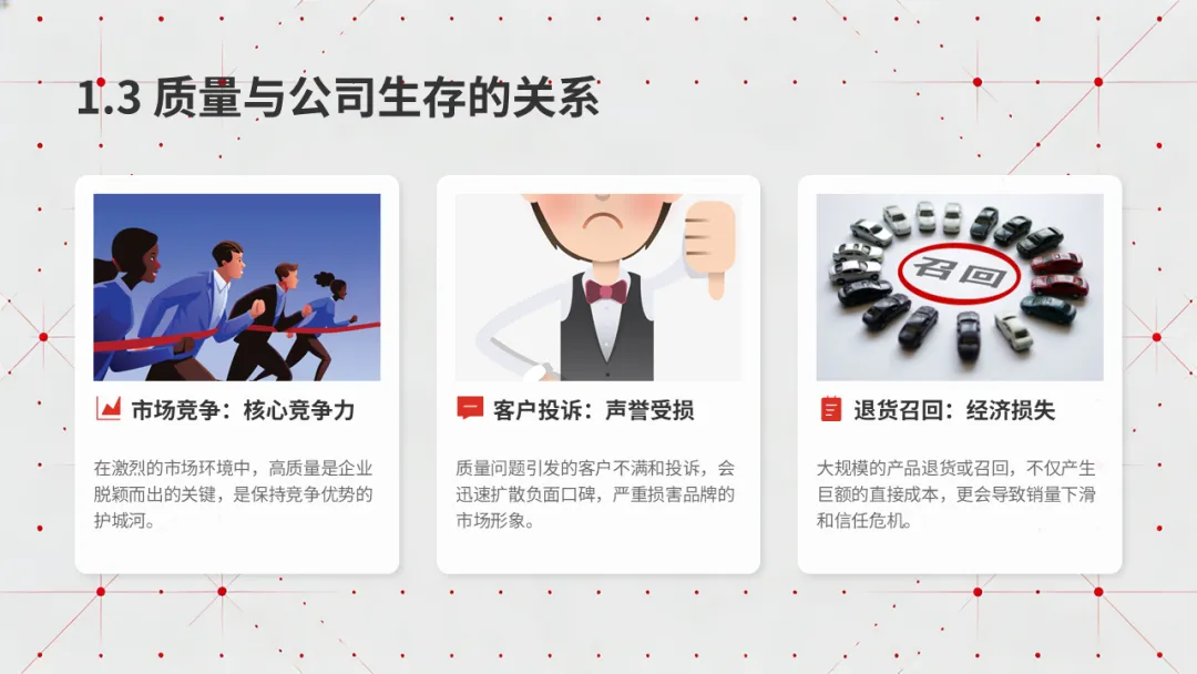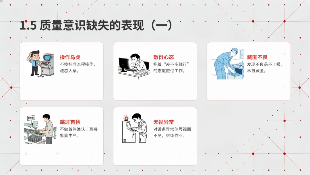 看清质量的本质(不只是标准,更是价值);看透质量问题的根源(不仅是手误,更是心障);看清做好质量的好处(不仅是公司要,更是自己赢);学会从“被动应付”到“主动守护”的转变方法这不只是一场培训,而是一次职业尊严的唤醒。