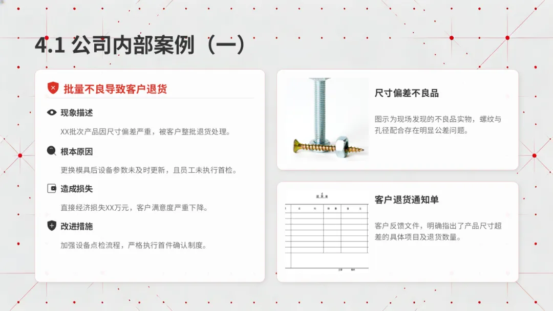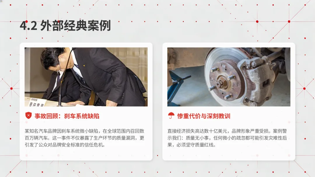 真实案例:某汽配厂因一颗螺丝漏装,导致主机厂产线停摆。→ 直接索赔:80万元→ 间接损失:年度份额削减30%→ 最终:合作终止,工厂裁员40%。质量问题,是在偷全厂人的饭碗。