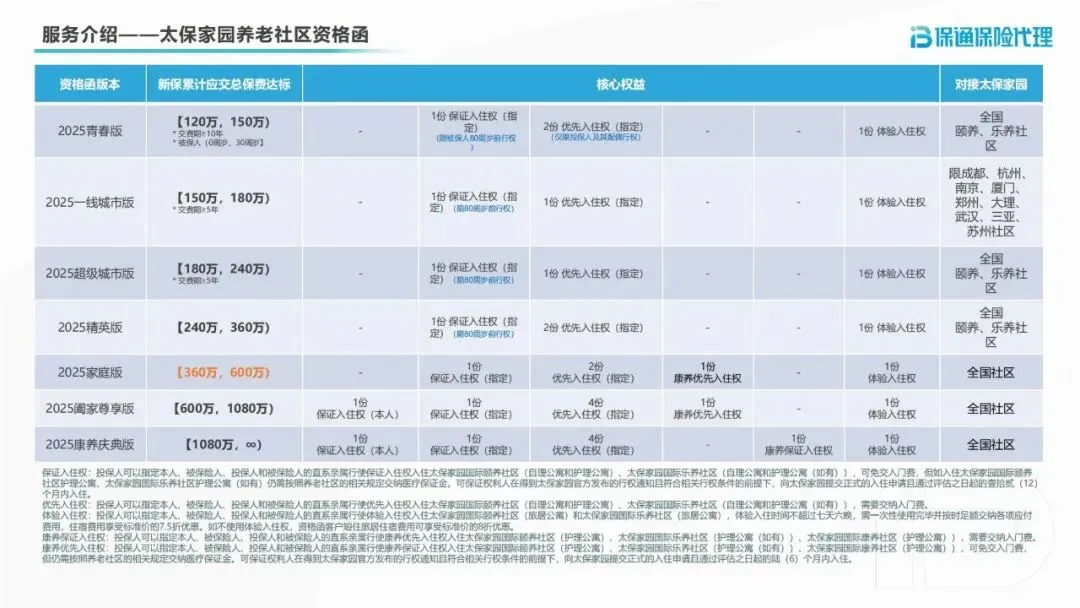 3.太保家园养老社区:投资开发规模行业领先,拟投资额200亿元,落地15个项目,交付床位数8800张,规划床位数超16500张,形成城郊颐养、旅居乐养、城市康养三位一体的产品体系。投保达到对应保费标准,可获得保证入住权、优先入住权、体验入住权等,提前锁定高品质养老资源。