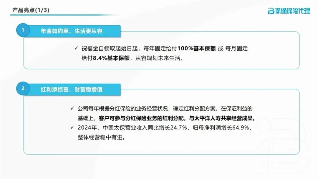 注:本产品为分红型保险产品,保单红利为非保证利益,实际红利分配不确定,在某些年度红利可能为零。利益演示基于公司精算及其他假设,不代表历史经营业绩或未来预期。具体保险责任、投保规则、服务内容以产品条款及相关协议为准完整版下载请点击文末“阅读原文”