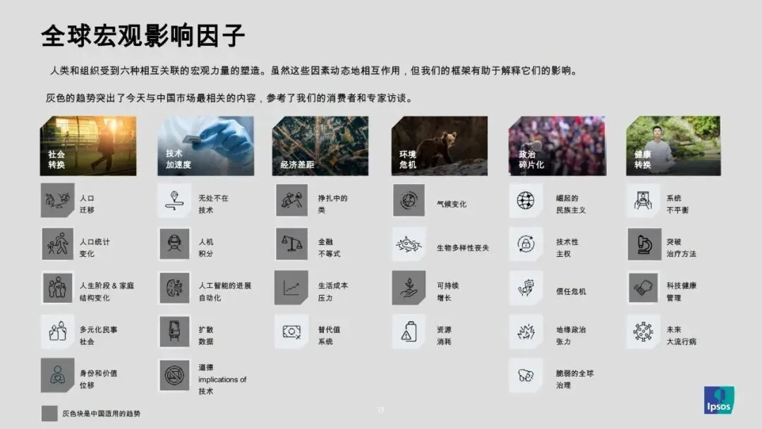 •生活方式迭代升级:健康科技、人工智能重塑生活方式,财富两极分化和生活成本压力影响消费决策,民族主义和气候紧迫性提升了道德消费和本土品牌意识。