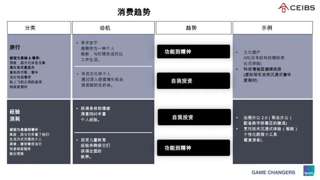 无论哪个消费领域,富裕消费者的需求都呈现出从功能到精神、从物质到体验、从被动接受到主动创造的转变,五大核心趋势贯穿其中。