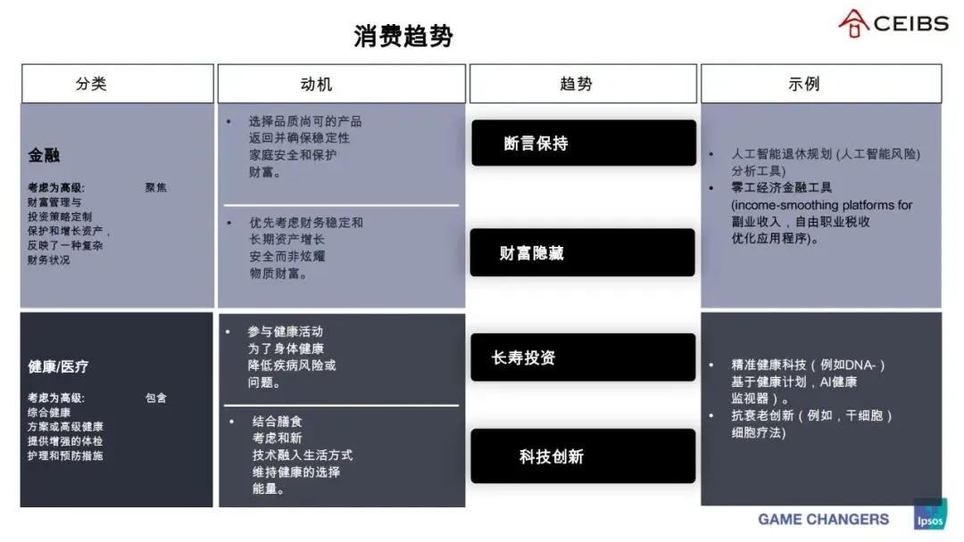 •安全与风险管理常态化:后新冠疫情焦虑使健康安全和稳定投资成为关注重点,“中产阶级生存包”概念延续,消费者更注重长期稳定的价值回报。