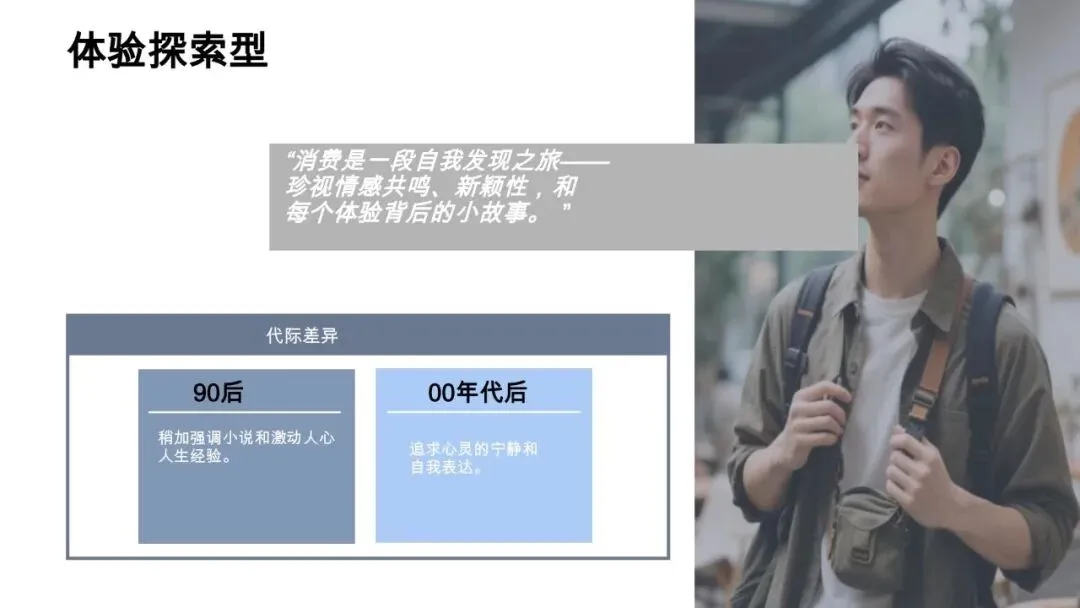 核心特征:好奇、独立、内省,消费是自我发现的旅程,珍视情感共鸣、新颖性和体验背后的故事。