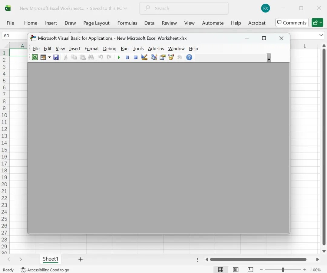 1、新建一个 Excel 文件,按下 Alt + F11 打开 VBA 编辑器。