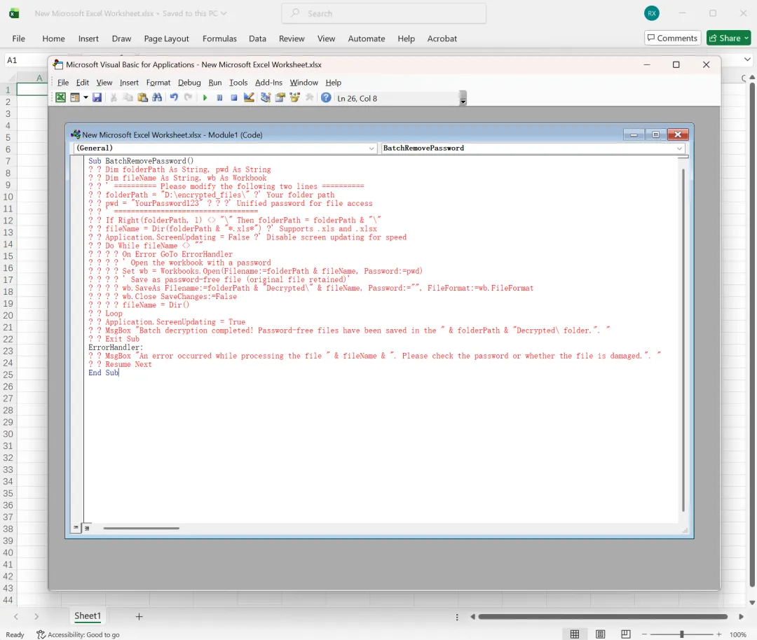 方法三:利用 VBA 宏批量取消 Excel 密码保护