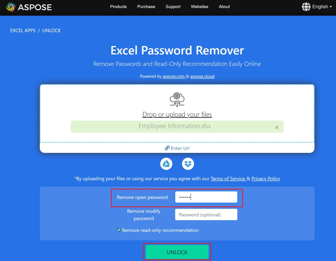 1、打开拥有 Excel 密码移除的网站,上传需要处理的 Excel 表格。