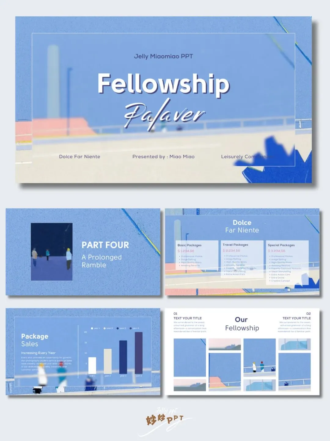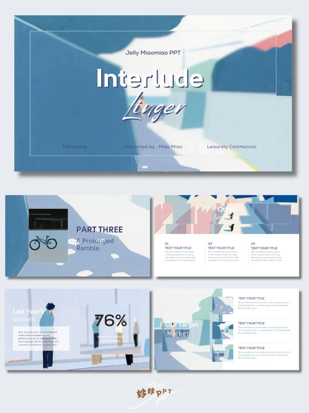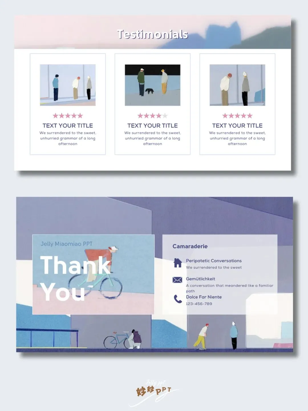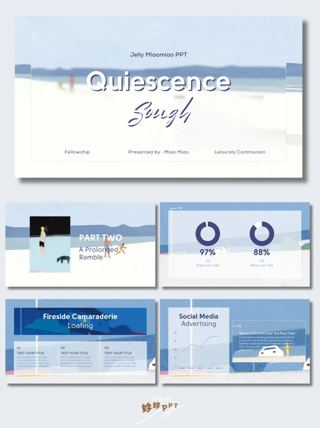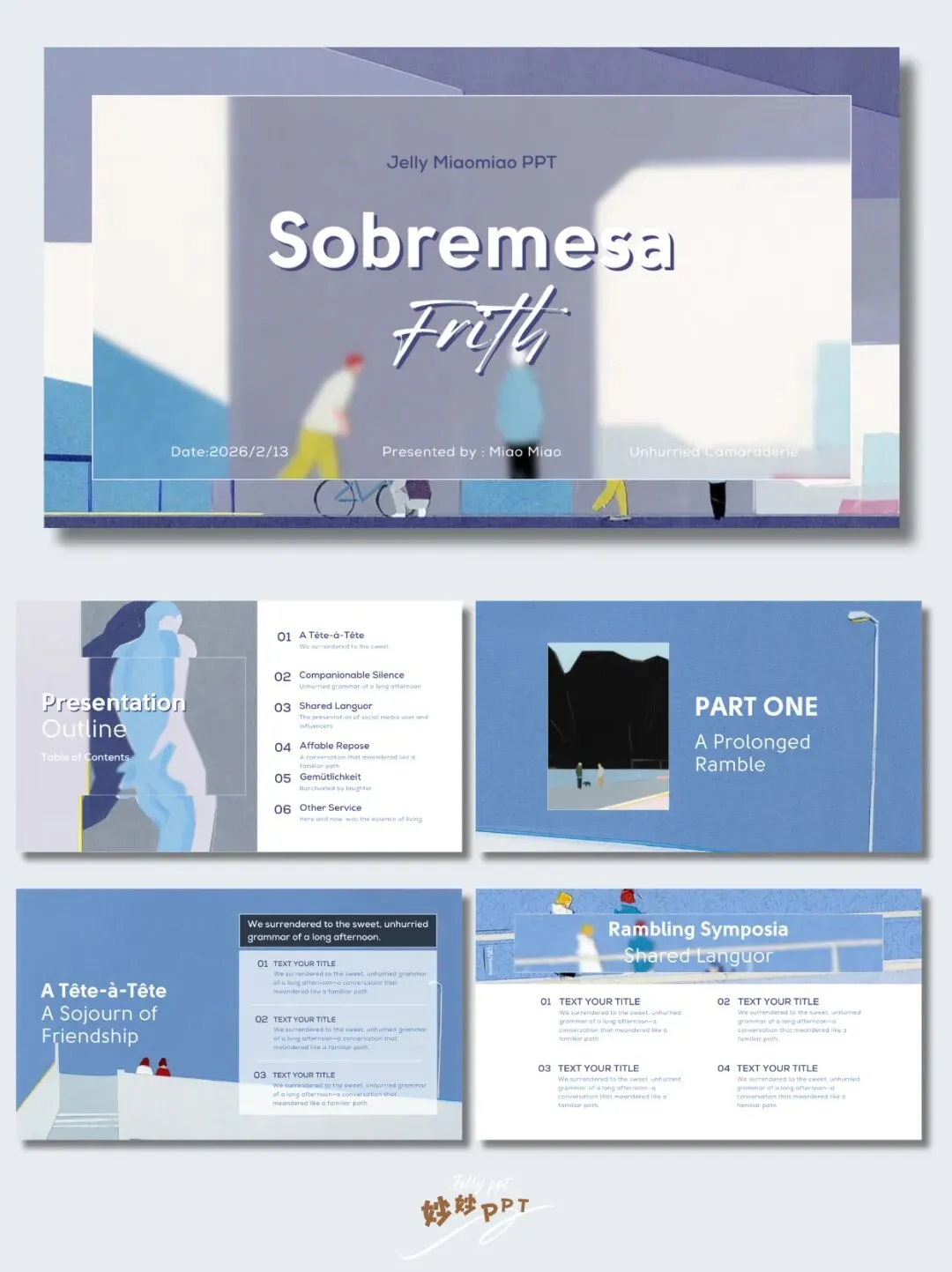 294|和朋友的悠闲时光 插画风PPT|蓝色ppt|简约ppt|ppt模板|ppt课件