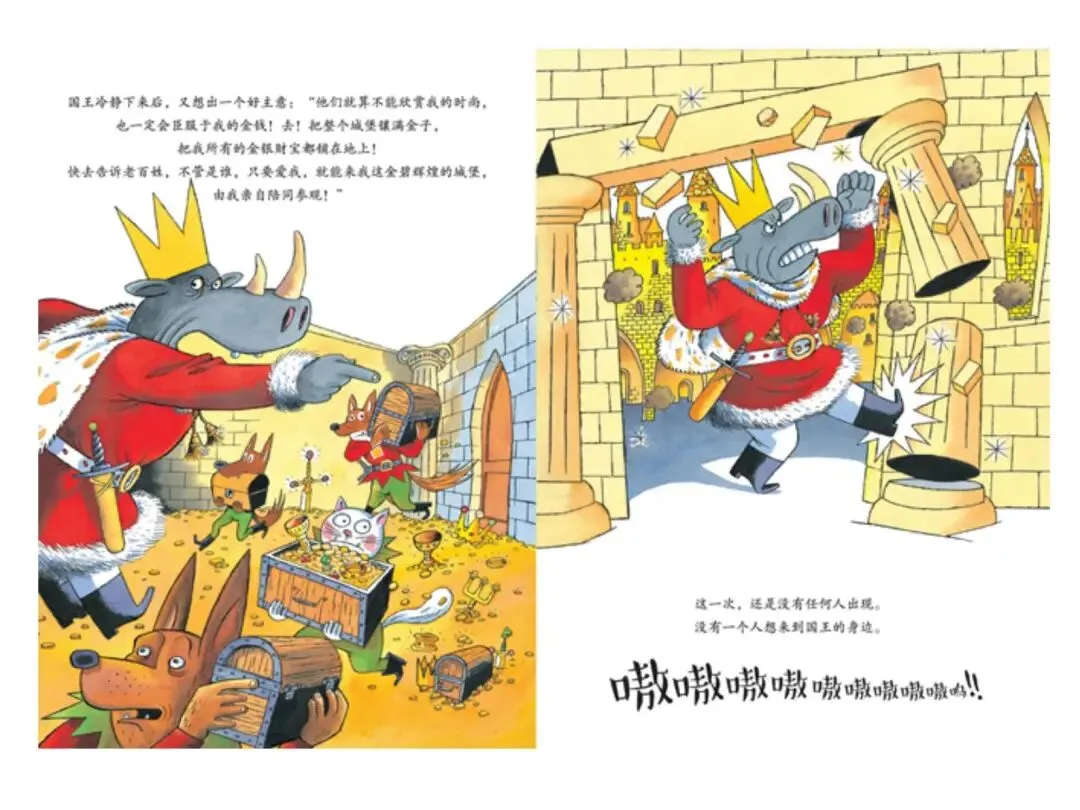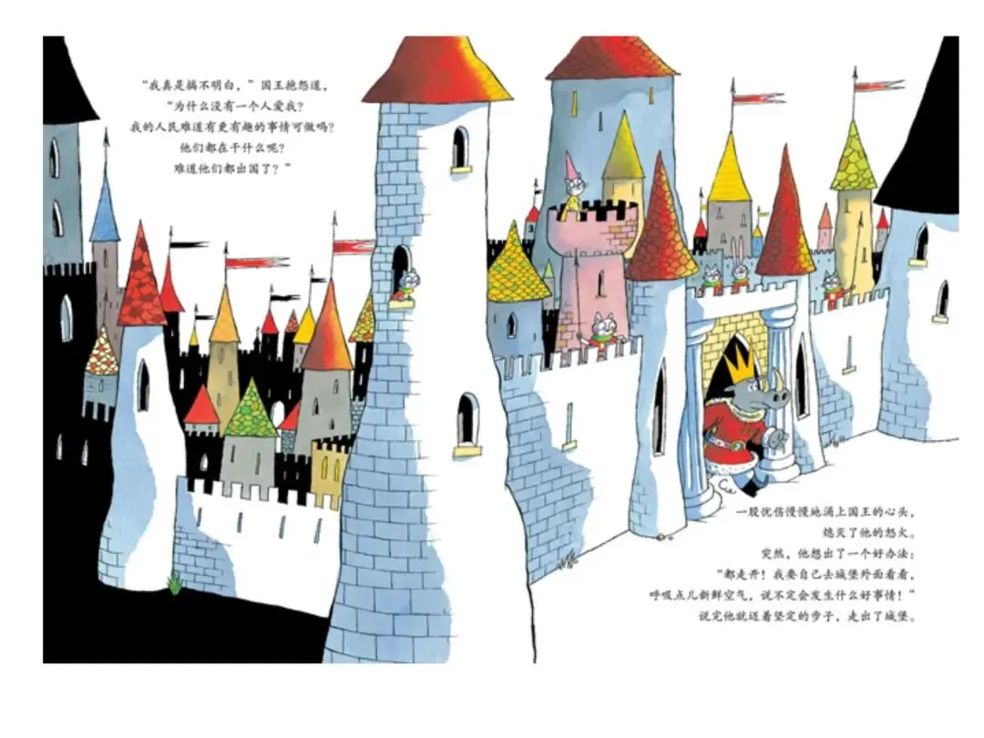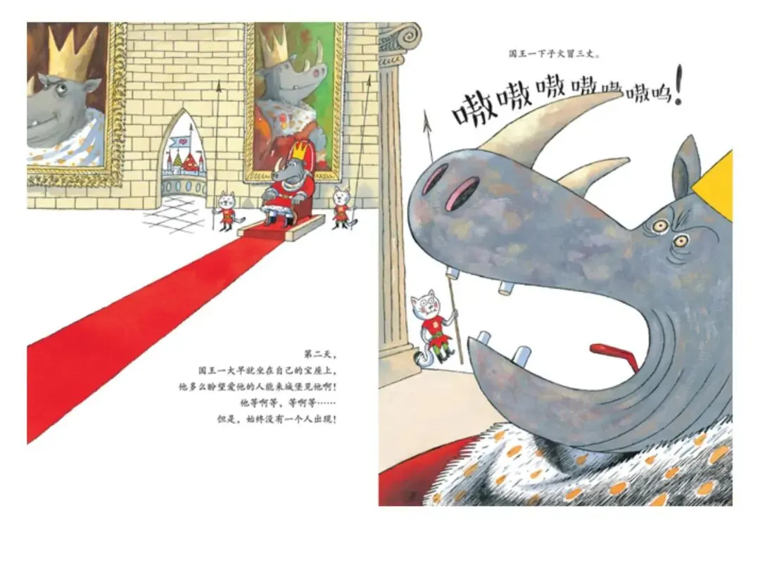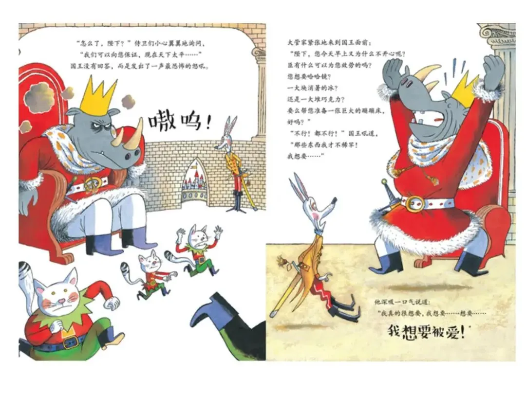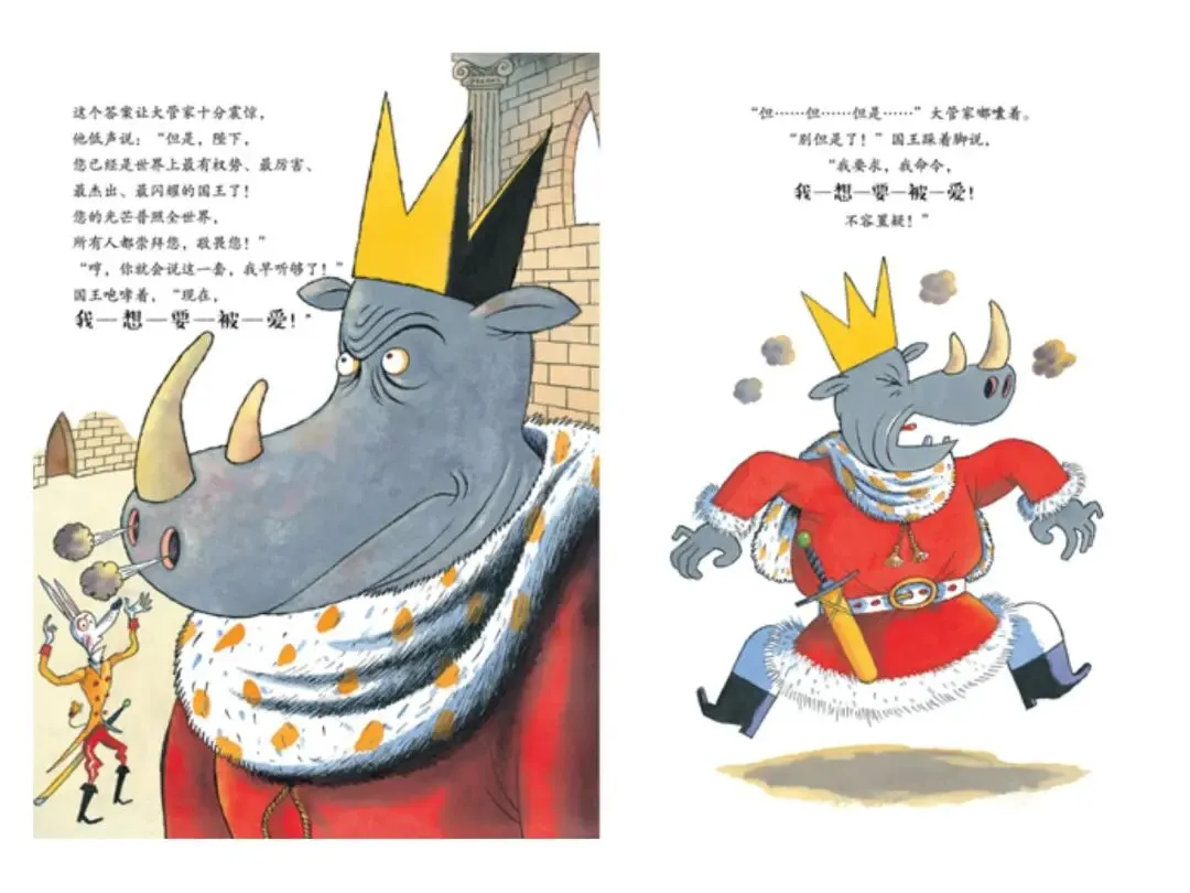2. 情节生动有张力:国王求爱失败到蜕变的过程反转有趣,牢牢抓住幼儿注意力。