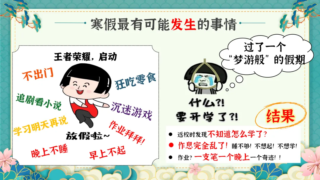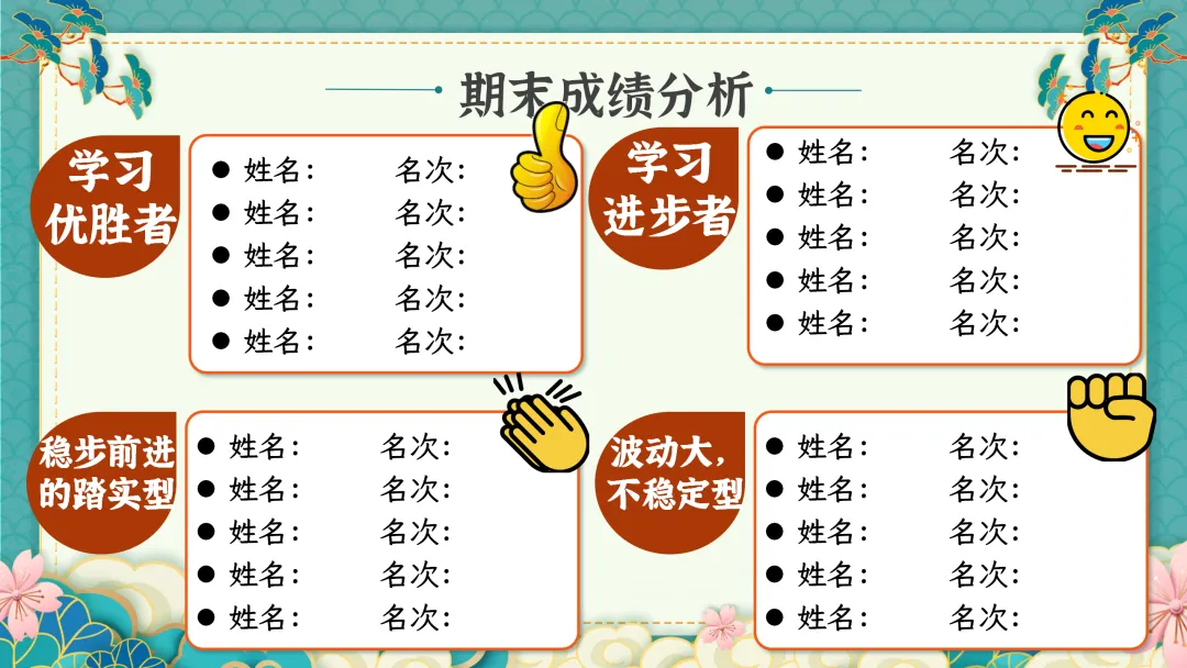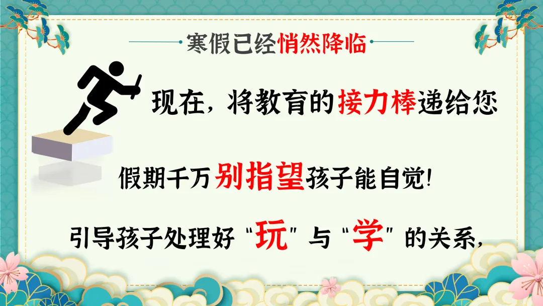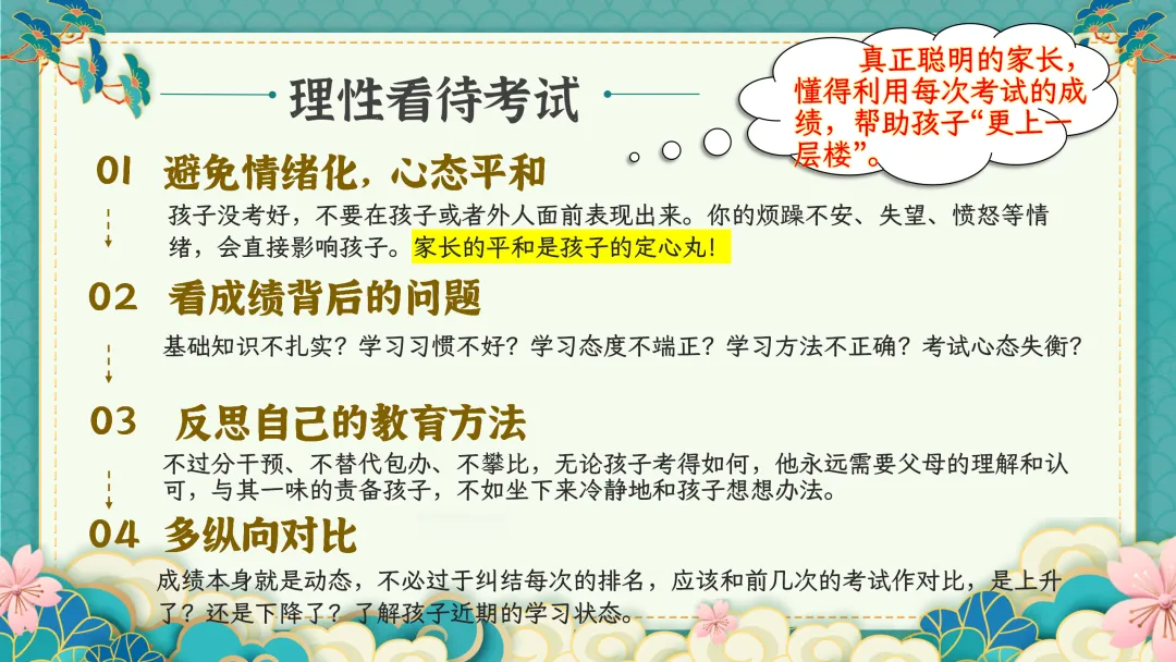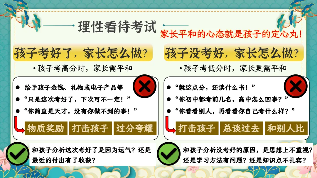 在这关键的高二阶段,教育的协同力量至关重要。此刻,站在学期尾声,我们相聚于此,就是要静下心,一同回望高二这一路的风景与坎坷,精准把握孩子们当下的学习、生活与心理状态。本次家长会主要内容分4部分:01积极向上的高二( )班;02有喜有忧的期末考试;03至关重要的亲子关系;04劳逸结合的寒假生活。
