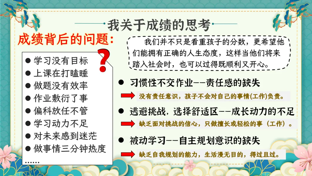 成绩背后的问题:学习没有目标;上课在打瞌睡;做题没有效率;作业敷衍了事;偏科放任不管;学习动力不足;对未来感到迷茫;做事情三分钟热度