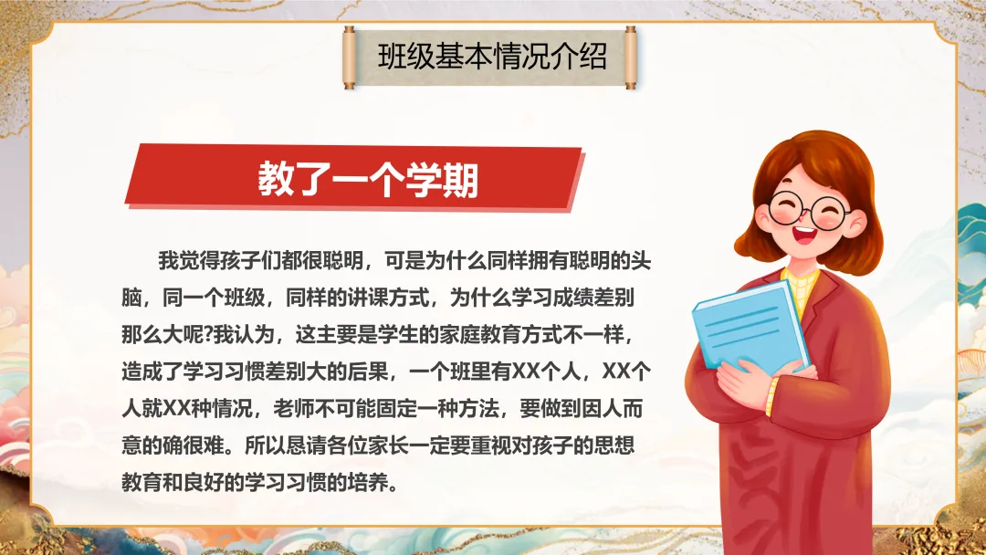 我知道,有很多家长都很想知道自己的小孩在这一个学期的学习中,成绩怎么样?在学校表现怎么样?学习能力和发展的潜能怎么样?召开这次家长会,主要目的也是:希望家长进一步配合老师,做好一些工作,加强你们和学校之间的联系,让孩子们学得更好,取得更好的成绩!