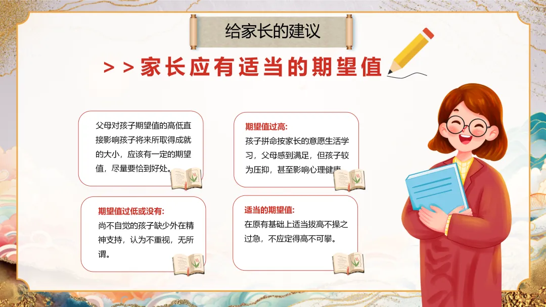 父母对孩子期望值的高低直接影响孩子将来所取得成就的大小,应该有一定的期望值,尽量要恰到好处。