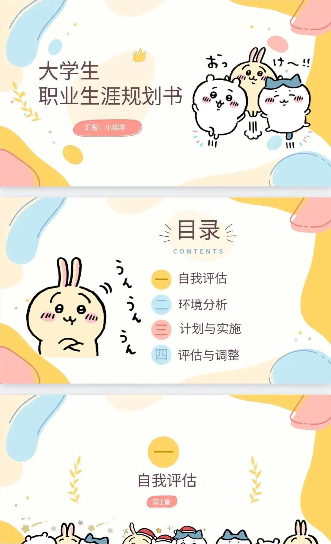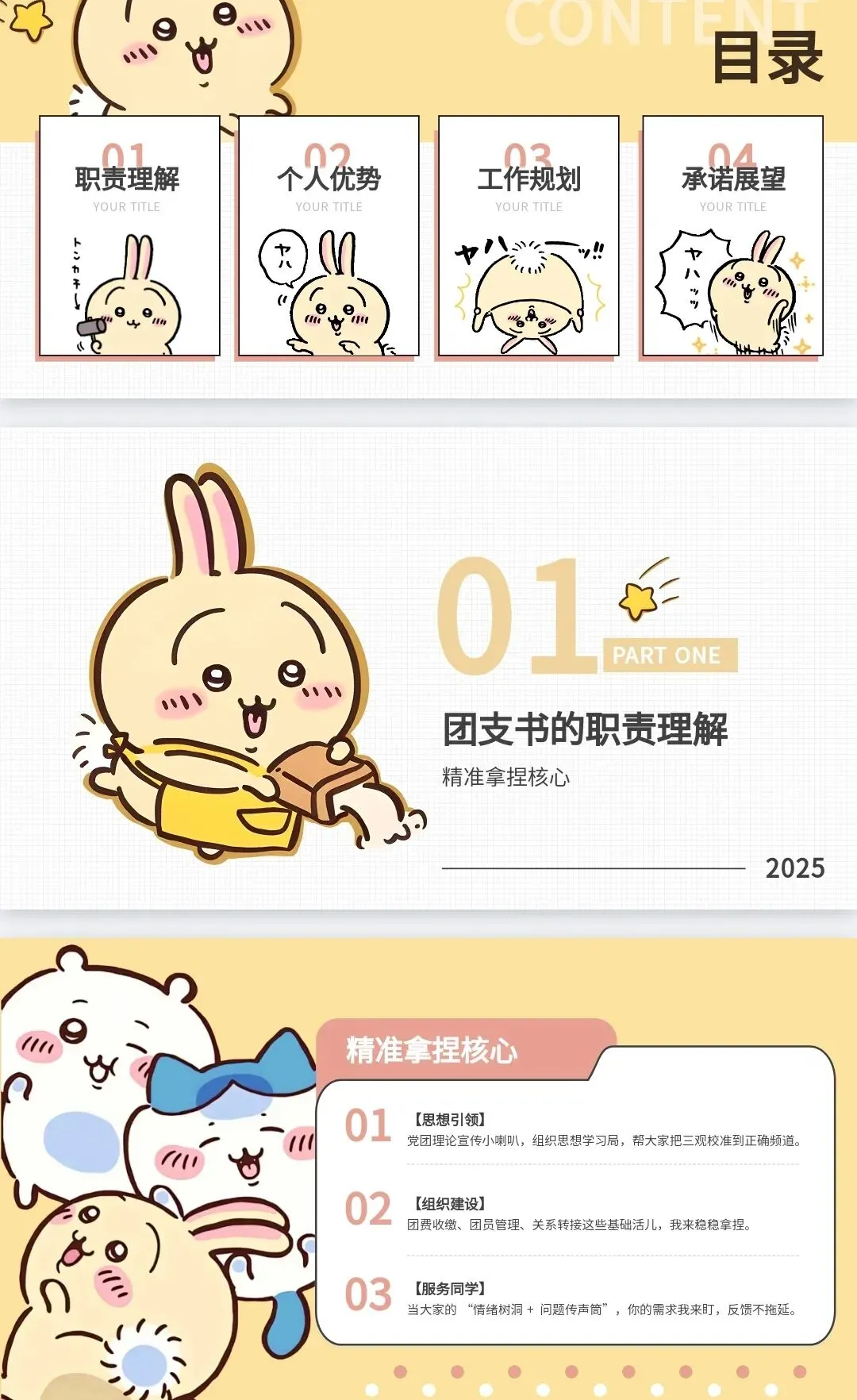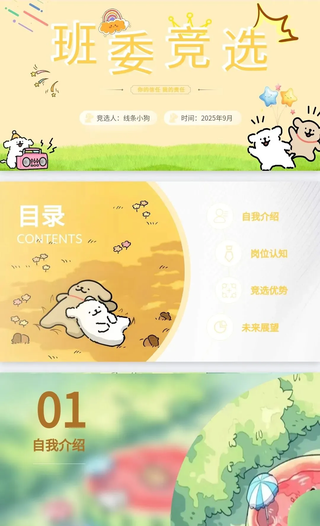 萌趣竞选!大学生班委竞选卡通风 PPT 模板直接抱走