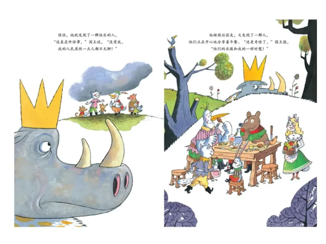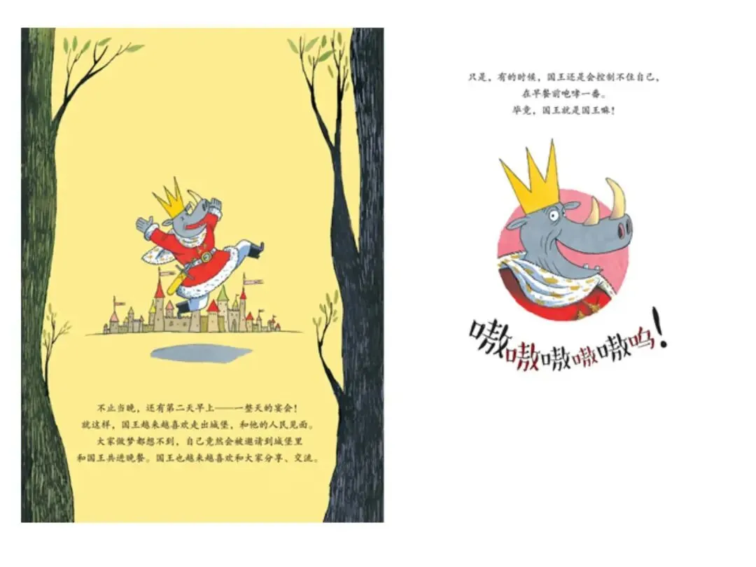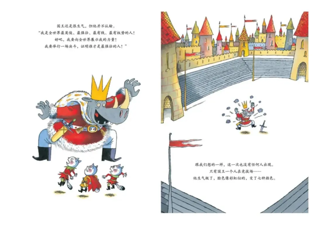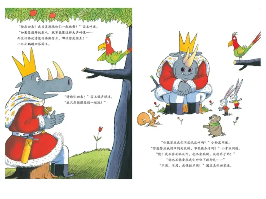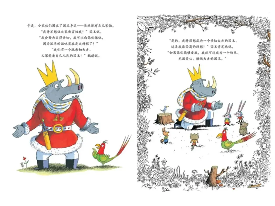 2. 情节生动有张力:国王求爱失败到蜕变的过程反转有趣,牢牢抓住幼儿注意力。