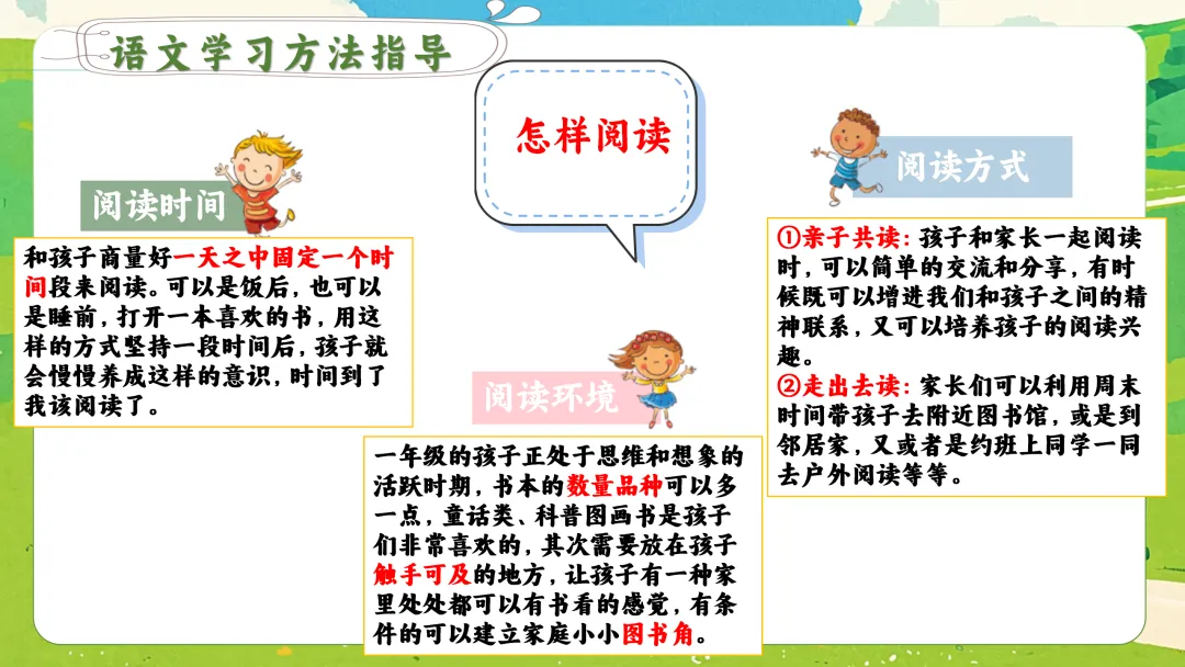 1. 拼音:目标是从“会拼读”到“能阅读”。可以玩“课文配音员”游戏:找一篇带拼音的短文,让孩子声情并茂地读出来,录下来,他会非常有成就感。