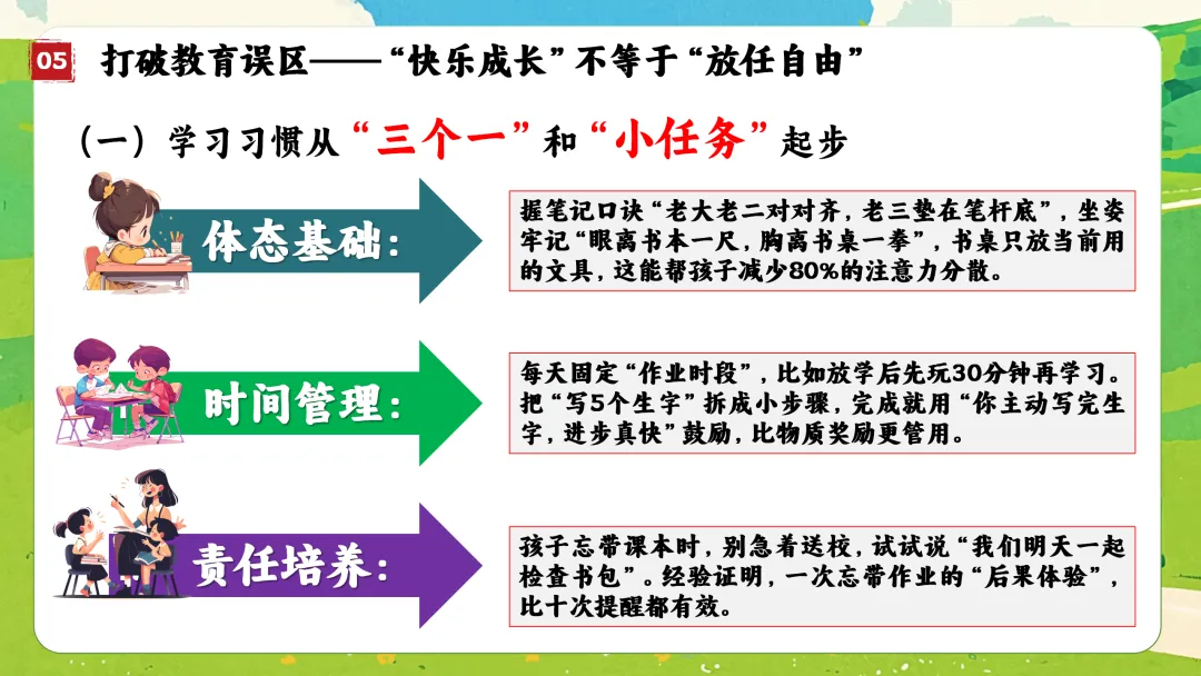 3. 阅读与表达:目标是从“会复述”到“能表达”。这是重点。从“看图说话”开始:五、打破教育误区:“快乐成长” ≠ “放任自由”