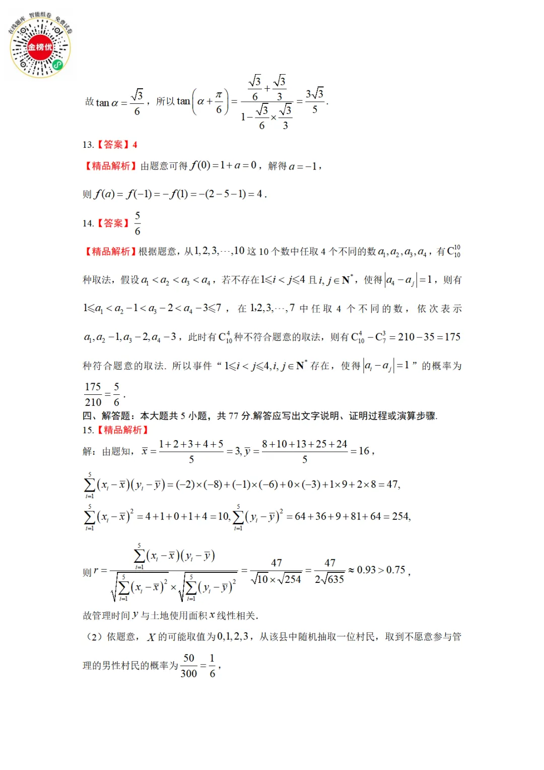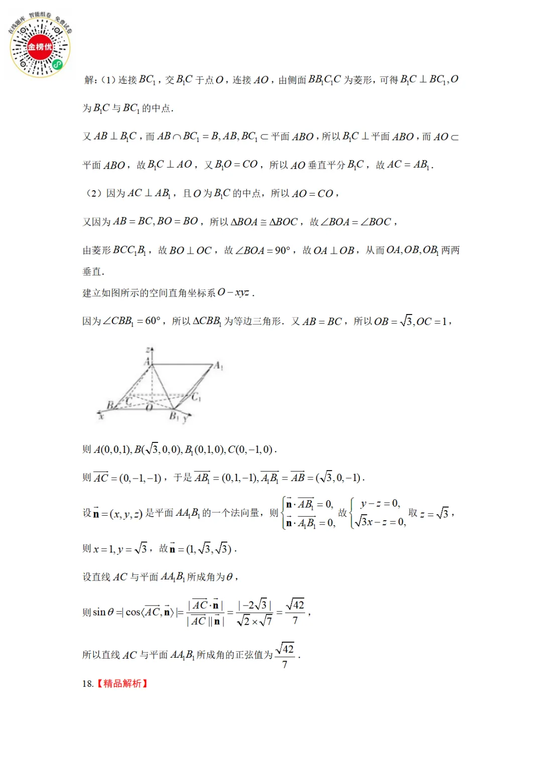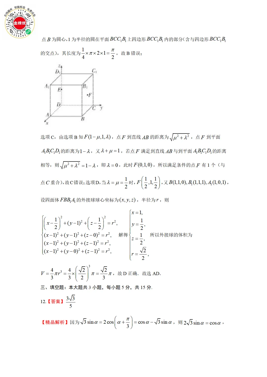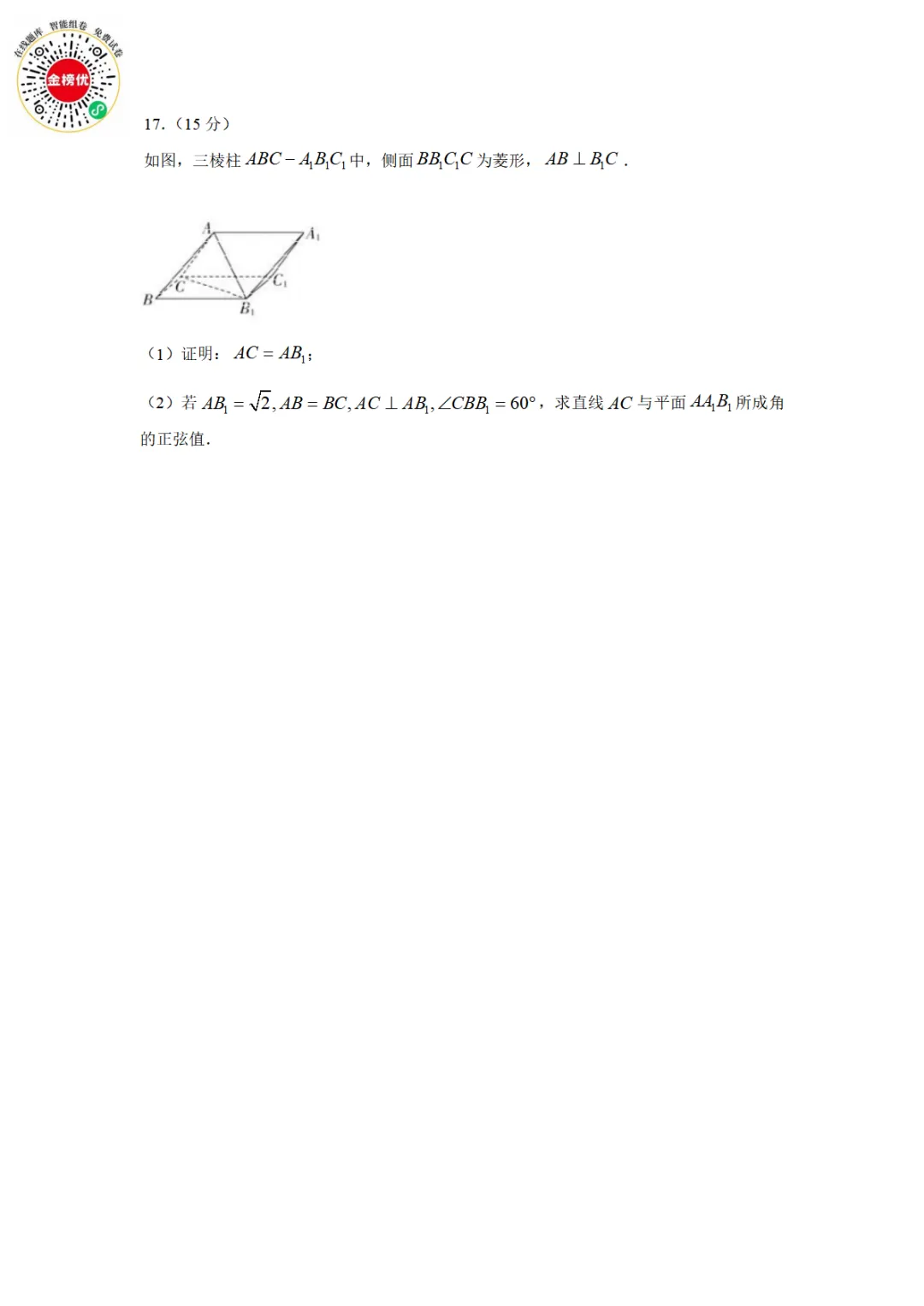 【精品word版】2026年浙江强基联盟高三1月联考数学试题+答案
