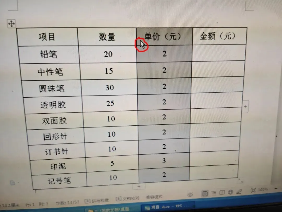 如果想把“单价”这一列调到“数量”这一列的前面。