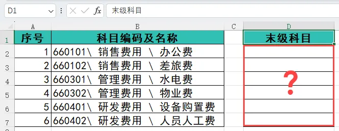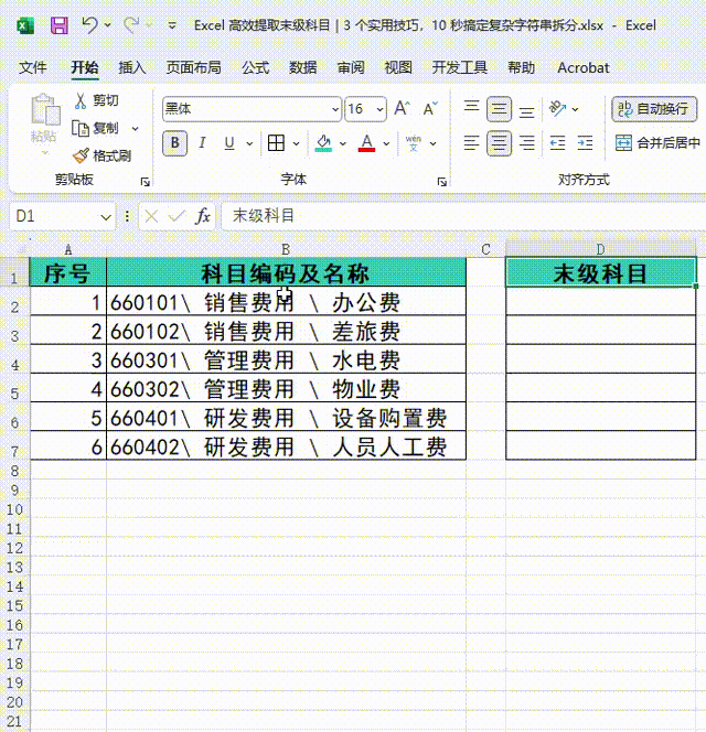 Excel高效提取末级科目