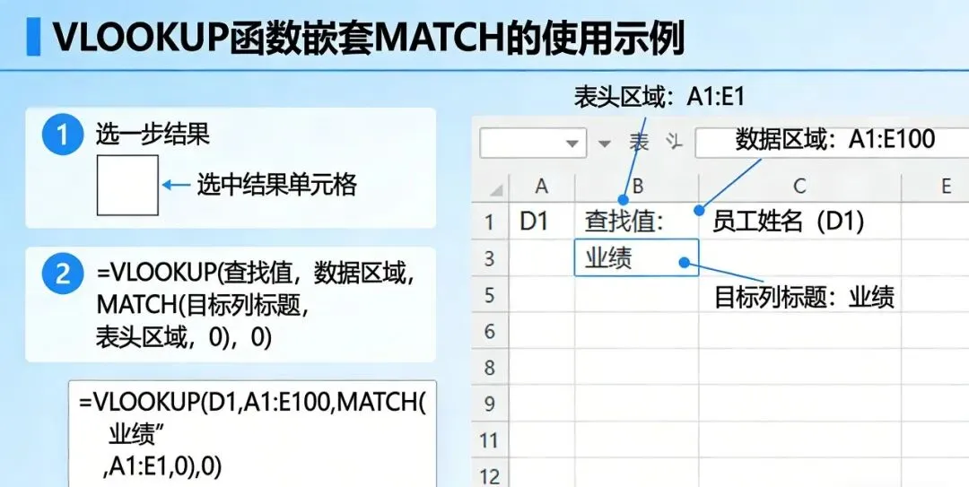 技巧 1:VLOOKUP + MATCH 函数组合:动态匹配列数,公式永不报错