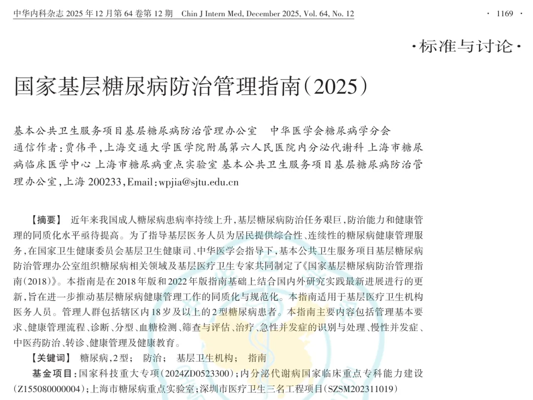 《国家基层糖尿病防治管理指南(2025)》是在 2018 年版和 2022 年版指南基础上,结合国内外最新研究实践修订而成,由基本公共卫生服务项目基层糖尿病防治管理办公室与中华医学会糖尿病学分会联合制定,适用于社区卫生服务中心、乡镇卫生院等基层医疗卫生机构医务人员,聚焦 18 岁及以上 2 型糖尿病患者的防治管理。