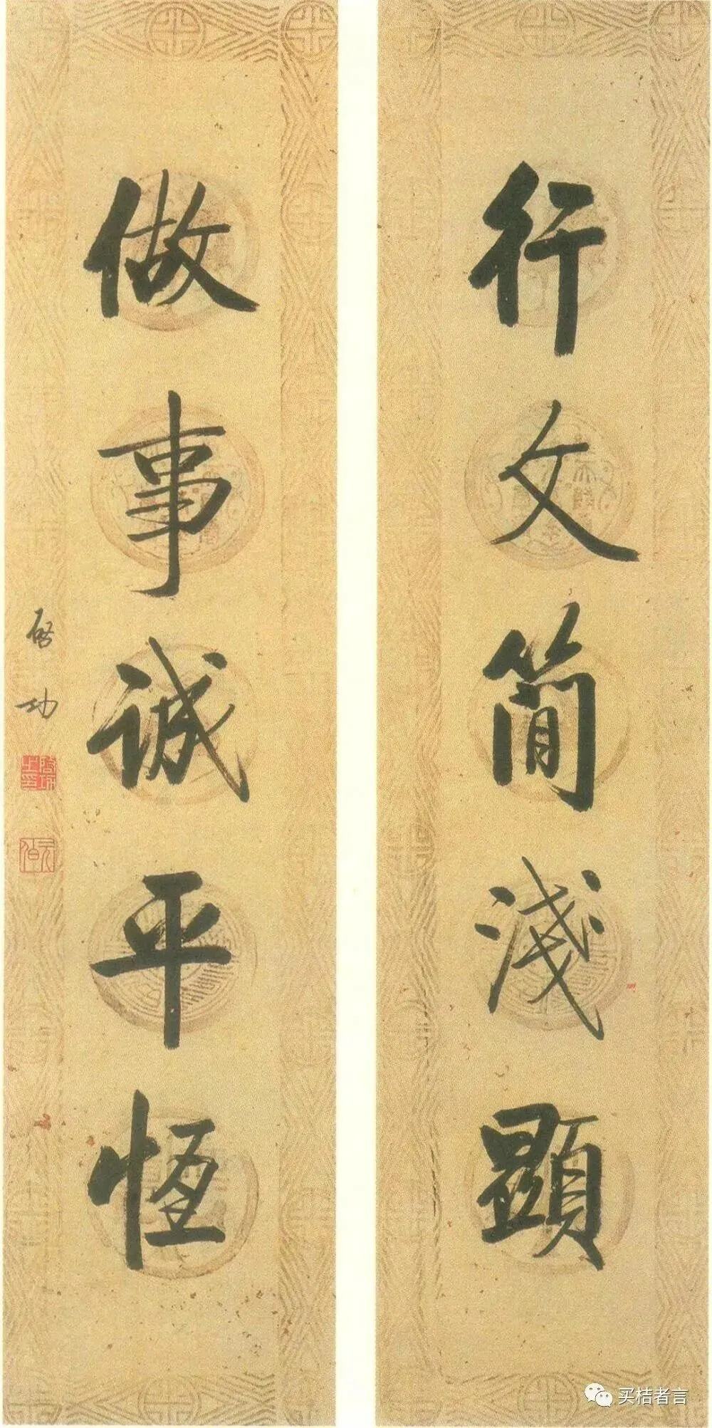 启功书写的这幅对联其实说了两件事,行文、做事,本处重贴意在强调下联的“做事”,其实,做PPT即是做文又是做事,“简浅显”、“诚平恒”可以互文。
