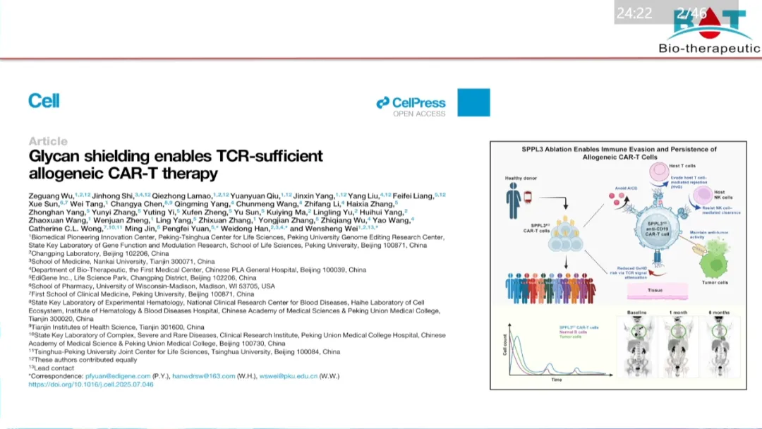 韩卫东:细胞表面糖盾与免疫识别一从肿瘤免疫逃逸到通用CART的免疫耐受(41P)