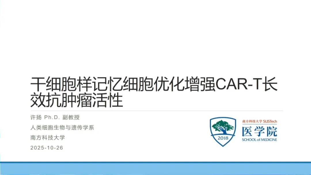 许扬:干细胞样记忆细胞优化增强CAR-T长效抗肿瘤活性(31P)