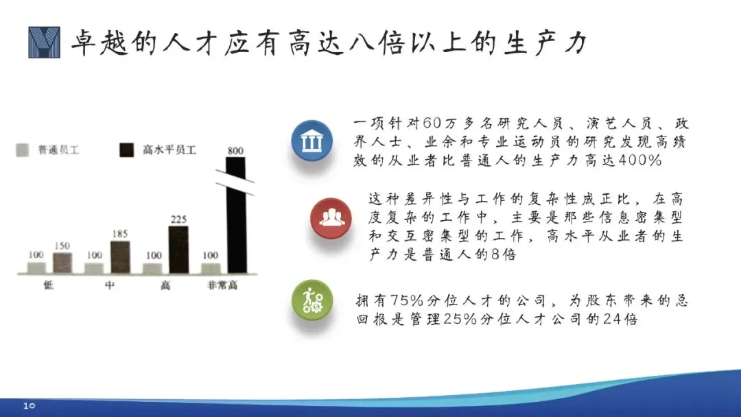 生产力差异:卓越人才生产力是普通员工的8倍(复杂工作中),高绩效从业者生产力比普通人高400%(60万+从业者研究)。