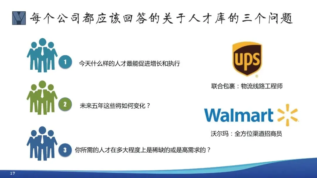 聚焦5%头部人才:从“关键角色”出发(非流程/个人),优先投入创造95%价值的少数岗位(如联合包裹的物流线路工程师、沃尔玛的全渠道招商员)。