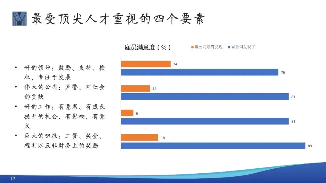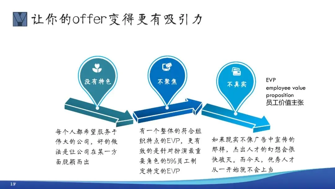 定制EVP(员工价值主张):避免“无特色、不聚焦、不真实”,针对5%核心人才设计专属EVP,突出顶尖人才重视的四要素(好领导、伟大公司、好工作、高回报);数据显示,兑现EVP的公司员工满意度达76%-89%,未兑现者仅6%-24%。