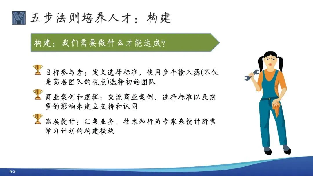构建:定义目标参与者选择标准,汇集业务/技术/行为专家设计学习模块。