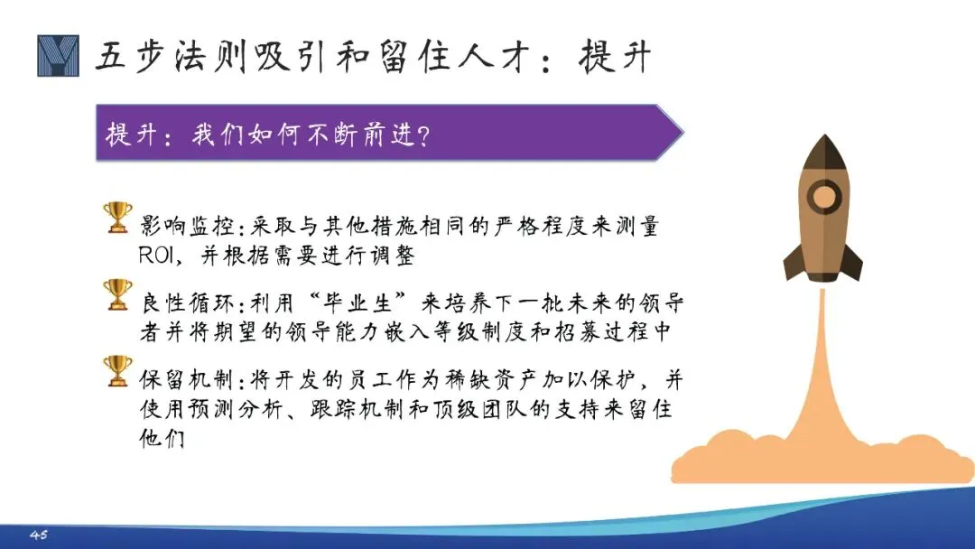 提升:严格测量ROI,用“毕业生”培养下一代领导者,用预测分析留住培养后的稀缺人才。