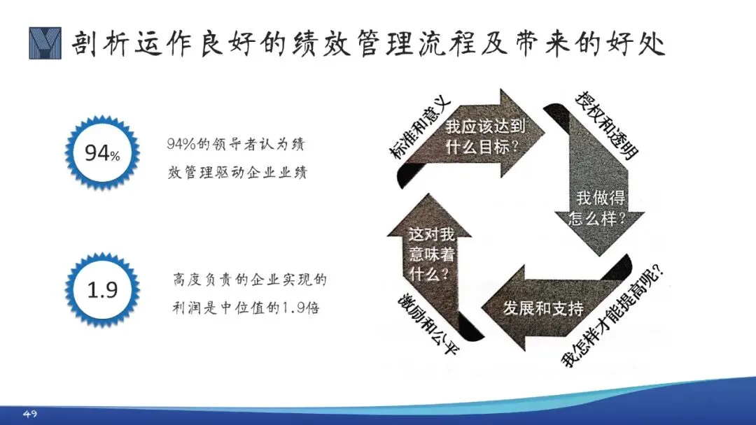 绩效管价值:94%领导者认为绩效管驱动企业业绩,高度负责的企业利润是中位值的1.9倍。