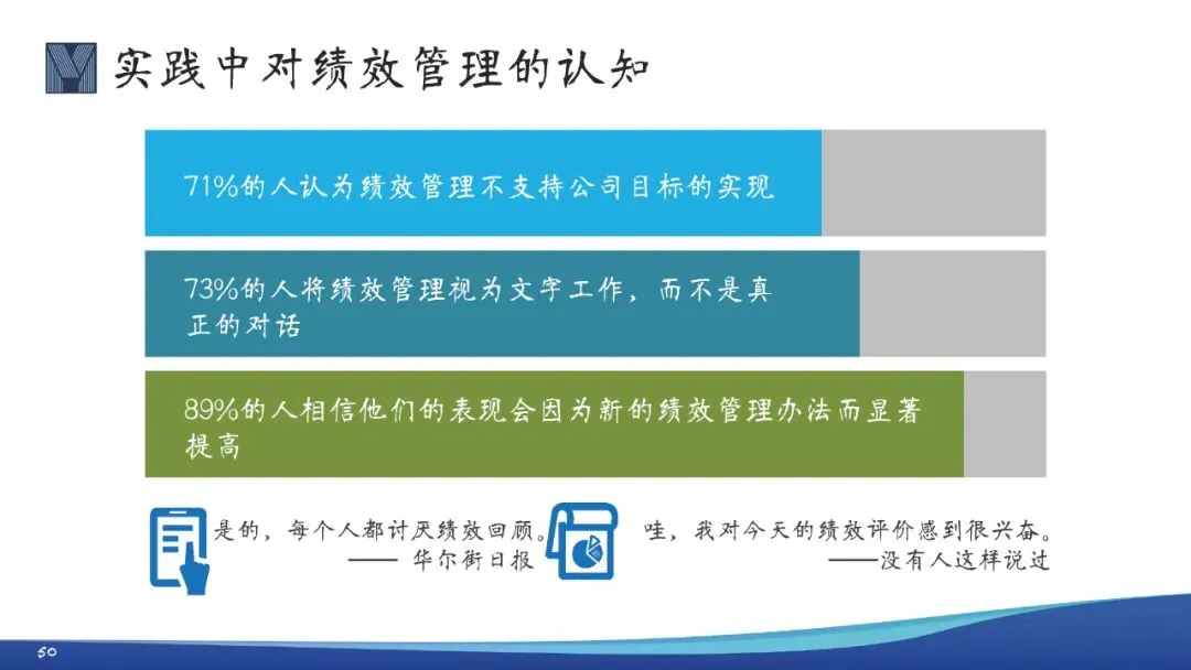企业现状:71%的人认为绩效管不支持公司目标,73%视其为“文字工作”,无一人对绩效评价感到兴奋(《华尔街日报》调研)。