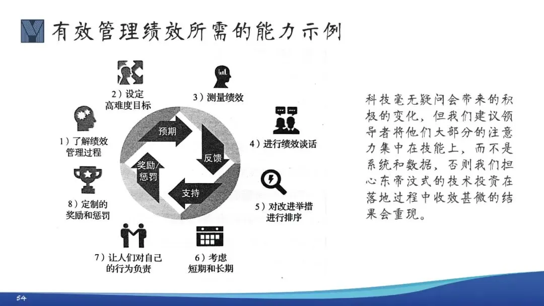 优先技能而非系统:科技是辅助,但需聚焦“设定高难度目标、绩效反馈、绩效谈话、改进排序”等核心技能,避免技术投资收效甚微。