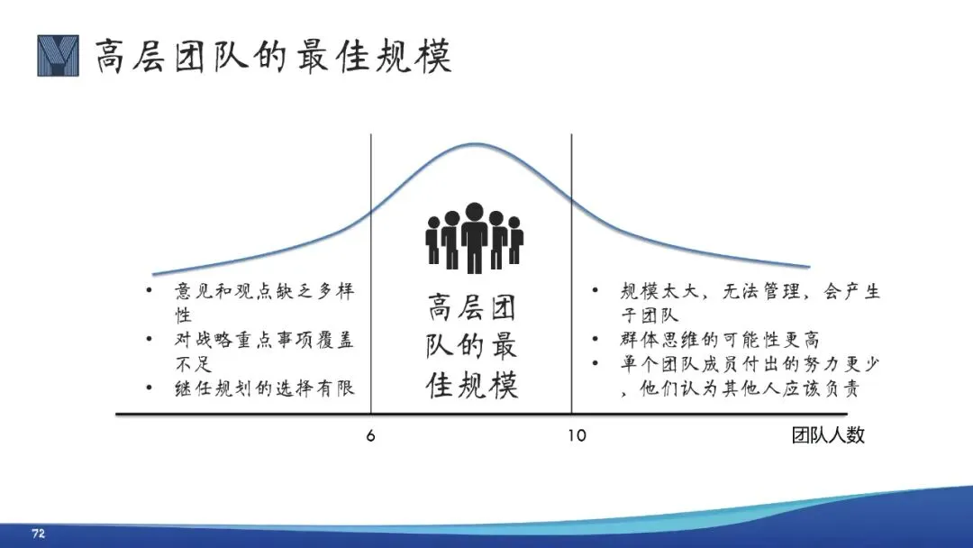 控制团队规模:最佳规模为6-10人,少于6人缺乏观点多样性,多于10人易产生子团队、群体思维。