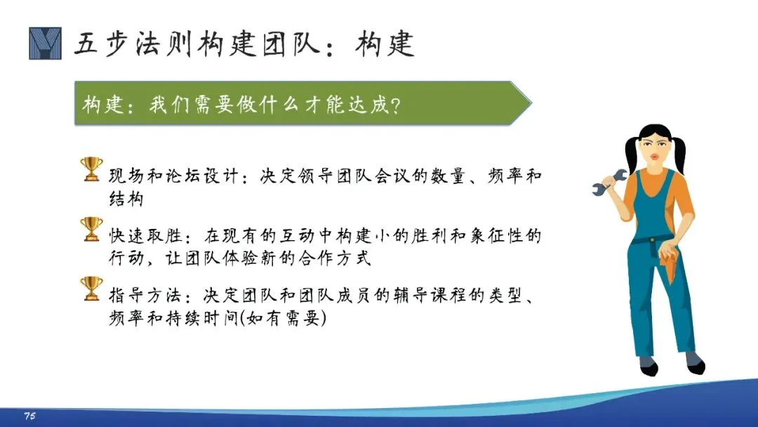 构建:设计团队会议(数量/频率/结构),创造“快速取胜”机会(实践新合作方式),确定辅导方案。