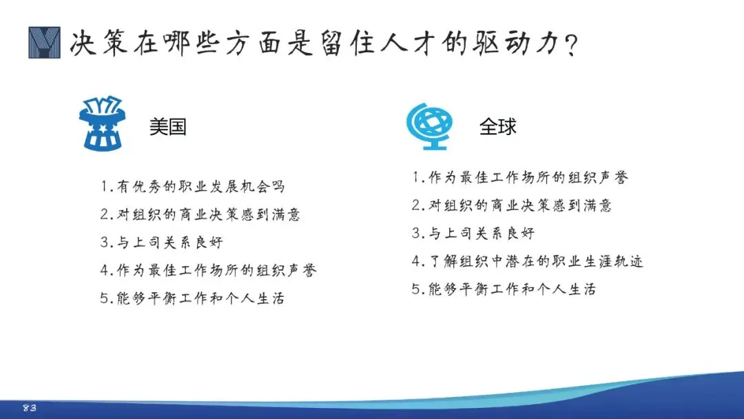 员工认知:仅28%员工认为公司战略决策总体良好,“对组织商业决策满意”是全球员工留任的第二大驱动因素(美国为第二、全球为第二)。