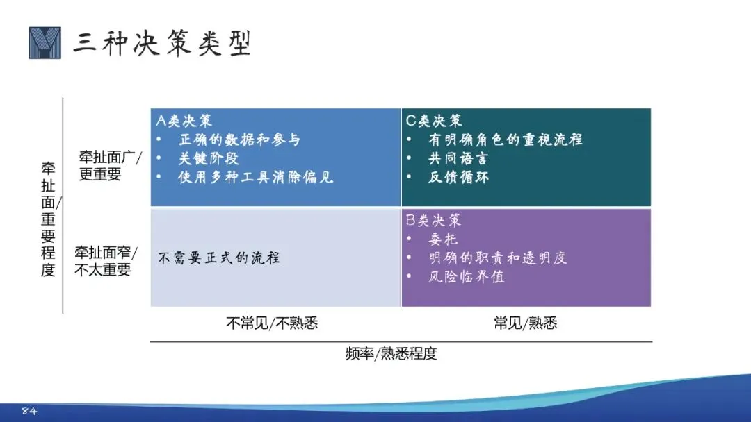 区分三类决策类型(按“牵扯面/重要性”“频率/熟悉程度”划分):
