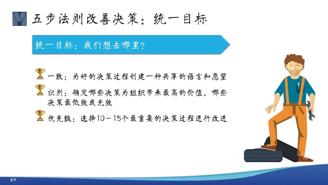 统一目标:建立决策过程的共享语言,识别高价值/低效决策,优先改进10-15个最重要决策流程。