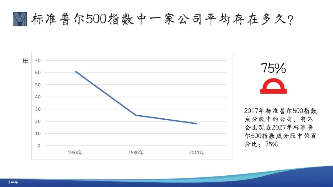 生存需求:“应变求生”是企业常态,标普500指数公司平均寿命缩短,75%的2017年标普500公司将不会出现在2027年榜单。