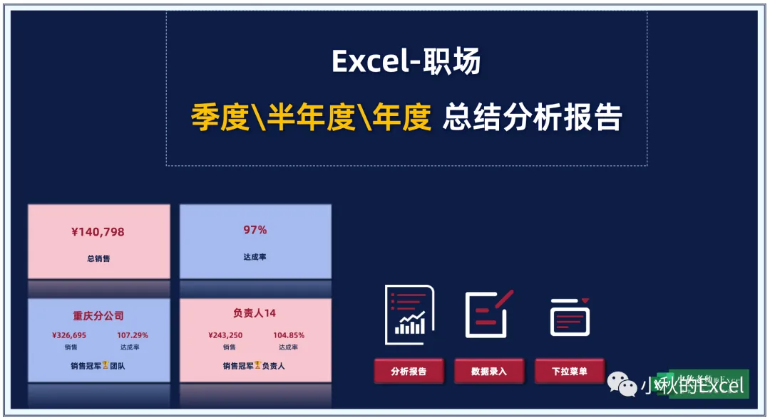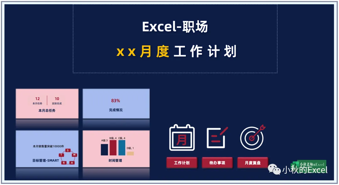 一整套统一风格Excel模版,从月报、日报、季报、月计划、周报、时刻分析等,实现统一风格职场报告,解决职场报告撰写难题PS.课程为视频录播课,模板为excel编辑,WPS可用,开通即可下载与学习,模板下载后可永久保存在电脑内,本系列模版小复杂,视频教程建议参考• 需经常使用Excel\WPS进行数据分析,努力+烦躁的你• 每月需撰写汇报(日\周\月\季\年)等报告,分析汇报的你• 小秋老师:小秋的Excel主理人,18年培训经验,擅长大数据分析与企业Excel模版定制,专注于好看且实用的Excel图表设计▎如何开通?(VIP学员可直接学习,无需单独开通)