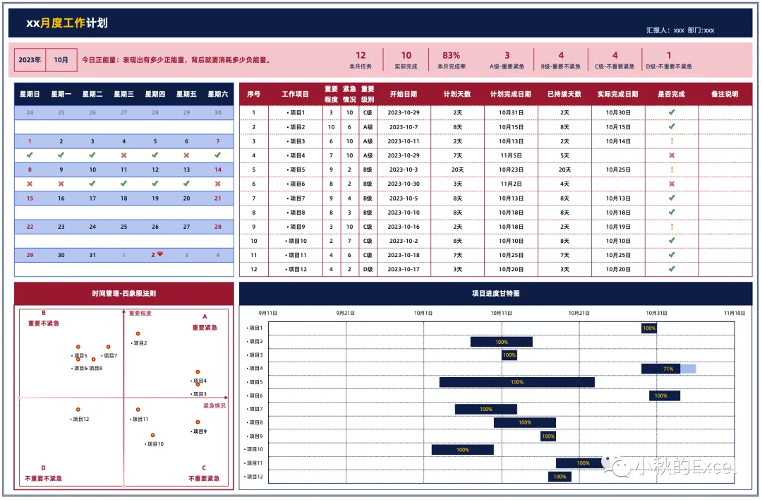 【职场】一整套Excel编辑职场动态分析报告(月报/日报/季报/计划/周报/时刻……)